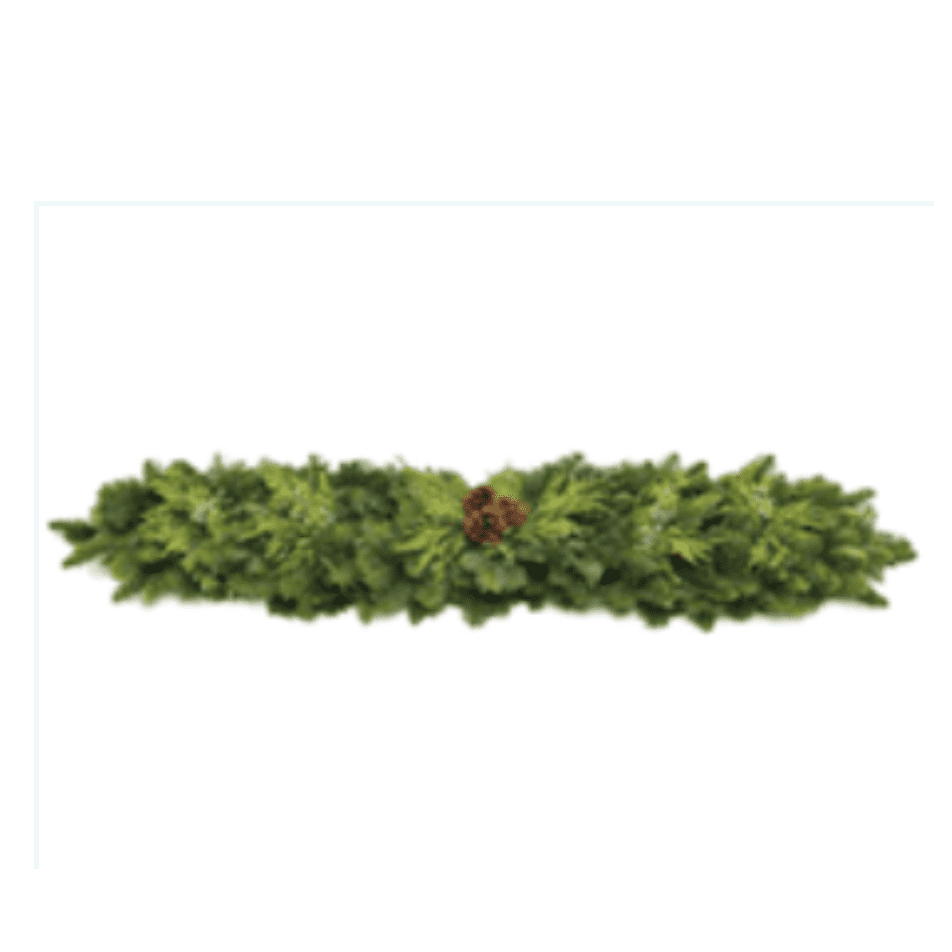 This mixed noble centerpiece has incense cedar and blue berried juniper along with pine cones. Great as a table runner, over a door arch, or on your mantle.